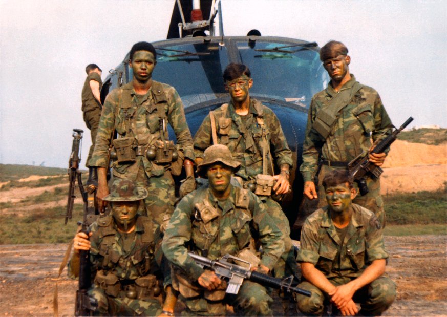 Se utilizaron fundamentalmente cuatro tipos de uniforme en combate en Vietnam.Hay variantes del Tiger, como el del ARVN y variantes del ERDL como el Mitchell, (EDICIÓN: El Mitchell no era una variante del ERDL, sino un camuflaje creado para los Marines en 1950.No lo pongo porque su uso fue muy limitado en Vietnam)pero en general, estos cuatro.