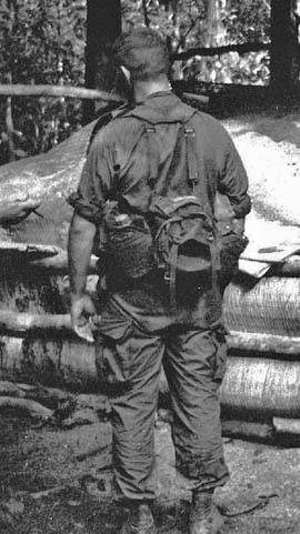 En Vietnam se utilizaba una mochila tropical más pequeña que la de montaña. Réplica disponible sin armazón en tienda europea aquí.