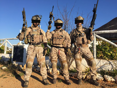 El uniforme elegido es el AOR1 versión Combat Shirt/Pants que se ha visto llevar a unidades del NSW/DEVGRU en muchas fotografías de referencia. Mis compañeros Correcaminos, Preacher(AKA Lord Turber) y Raff eligieron la copia gen3 de Allwin por su relación calidad-parecido con el original. Yo detesto la lycra en las rodillas y la cintura(atrapan todos los pinchos del mundo)por lo que me decidí por la copia de Emerson Gen2 sin lycra a propósito, ya que no quería renunciar a la comodidad de las rodilleras integradas, copia de las Airflex de Crye Precision. Podeis encontrar el Allwin por 116$