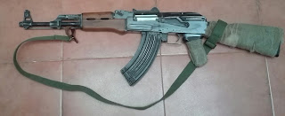 El fusil que la Guerra de Vietnam hizo mundialmente famoso, lo hay de todas clases y colores, desde 92 euros envío incluido aquí. Recordad que el Ak47/AKM es el correcto. Incluid todas las variantes e incluso los AK-74 y los VSS Vintorez con el debido desgaste. Yo tengo la mía así: