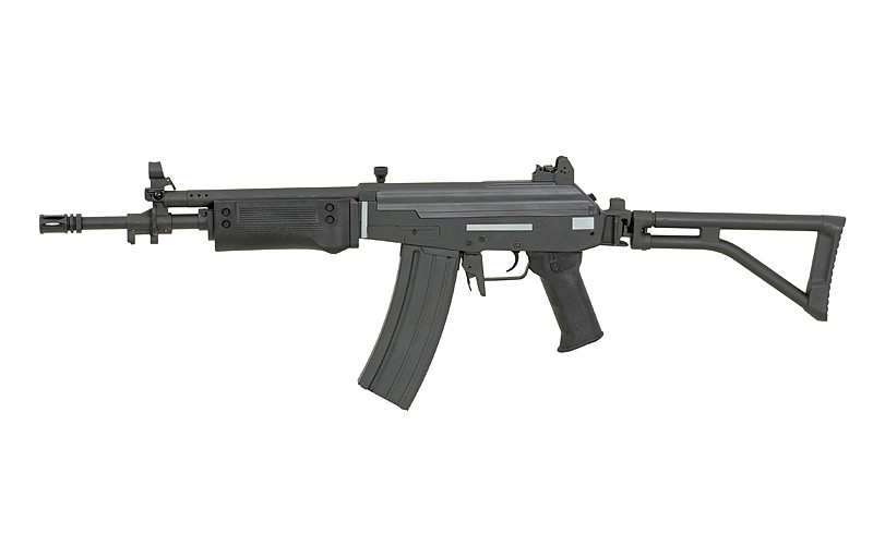 Uno de los modelos que marcan la diferencia en la serie es el uso de fusiles locales(Gran parte se rodó en Sudáfrica) que pese a estar en el inventario de airsoft, no se suelen ver por los campos. Para tener un buen R4 estilo Strike Back tenemos que elegir un Galil. El bueno es de King Arms, pero si no queremos gastarnos un pastón, recomiendo el de Cyma, aunque se vende como Cybergun. Lo teneis